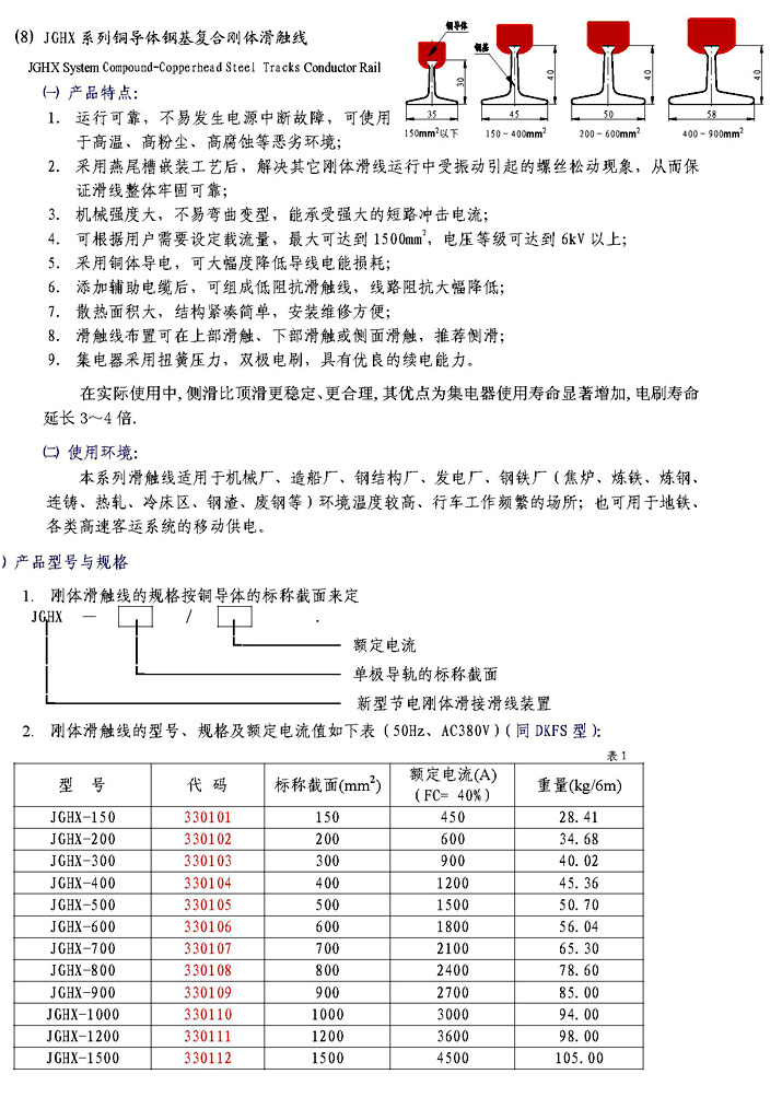 JGHX系列铜导体钢基复合刚体滑触